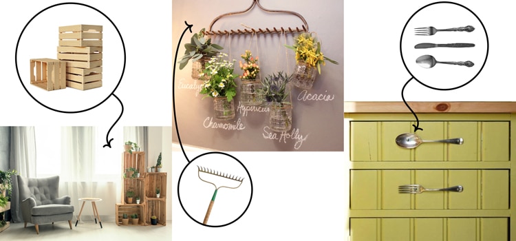 Upcycling, contrary to recycling, is a principle of “upwards” recovery. Recycling uses a chemical process to recover materials from objects that we no longer use or that have reached the end of their useful life. Upcycling (also called ” creative reuse”), is recovering materials or products that are no longer useful to us, in order to reclaim (add value to) them by transforming them into superior quality materials or products. Used objects are therefore given a new and improved life, both in their appearance and in their usefulness. Moreover, it is not uncommon to see that following the recovery of an object, the original use is changed to a new use. For example, converting an old metal rake into a lovely wall bracket, old mismatched utensils into handles for vintage furniture or wooden apple crates into a pretty shelf.