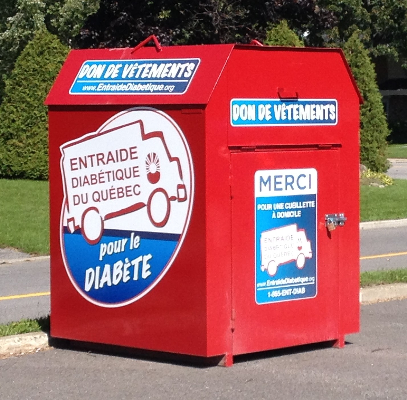 Depuis 1994, Entraide diabétique du Québec a développé une expertise hautement spécialisée dans les méthodes relatives à la collette de vêtements et menus articles usagés. Parmi celles-ci, les boîtes de dons de vêtements constituent une manière simple et conviviale de récupérer les dons de la population dans un quartier donné.
